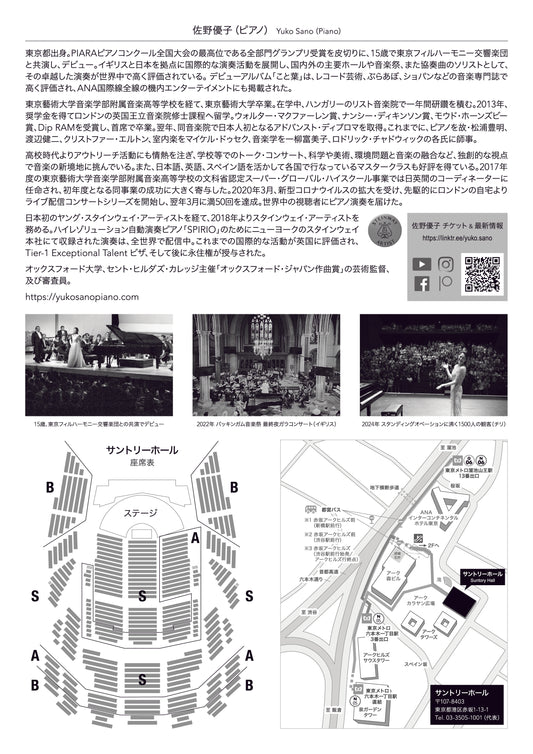 公演日時: 佐野優子 ピアノリサイタル 〜15歳のデビューから20周年を記念して〜 場所:サントリーホール大ホール