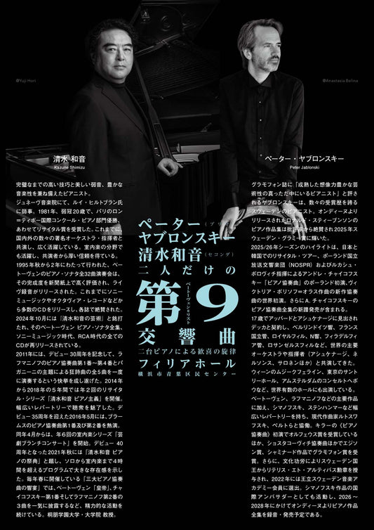 公演日時: ペーター・ヤブロンスキー&清水和音 ピアノの第九 場所:フィリアホール