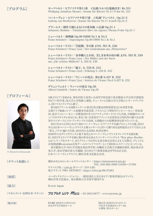 公演日時: 斎藤龍ピアノリサイタル 〜ベーゼンドルファー・インペリアルで奏でる ウィーンからの贈り物〜